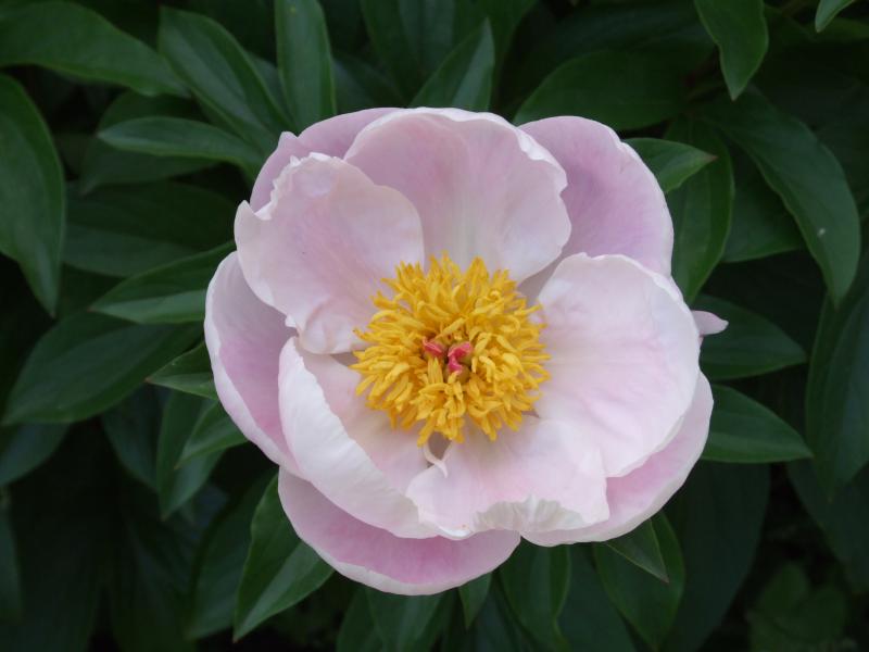 Mir fiel es dieser Tage wieder auf, ein Sämling, welcher am Ackerrand unter dem Schattensaum, aber nicht mehr im Wurzelbereich (!) von Nachbars Walnuss steht, ist ganz deutlich meine gesündeste und am vitalsten aussehende Pfingstrose. Und blüht offenbar auch gut. Das Rosa ist nur schon etwas ausgebleicht, die Hitze macht aus dem Rest der Paeoniensaison einen Schnelldurchlauf.