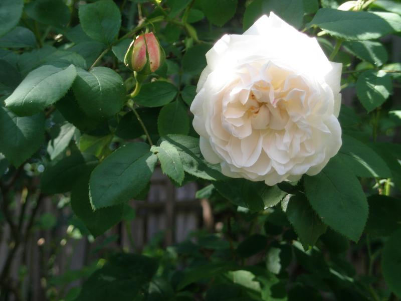 Eine Mme Alfred Carriere wurde hier ja schon gezeigt, unsere zeigt auch erste Blüten, und steht ( bei uns im Garten ) für den ersten Rosenduft des Jahres, Fliederduft ist in ein paar Tagen vorbei, Holunderduft ( und -blüte ) übernimmt.