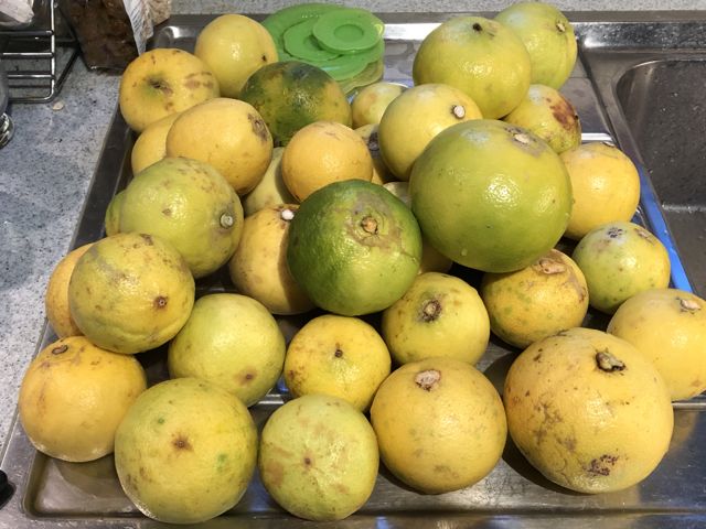Die bestellten 10 kg Bergamotte-Zitronen kamen problemlos hier an. Hier ein Teil der Menge. Die Nachbarin bekam auch ein paar davon.