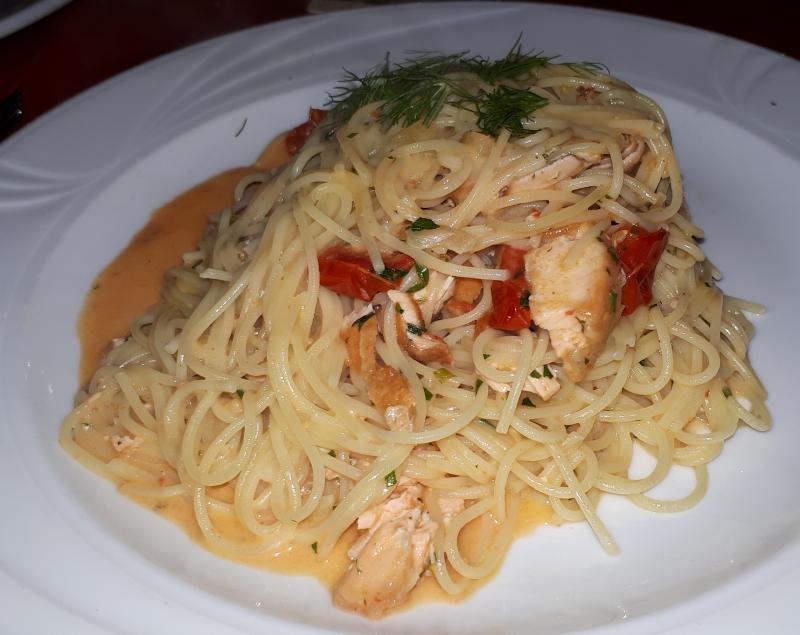 Ich war gestern mit einer Freundin aus: Lachs auf Salat