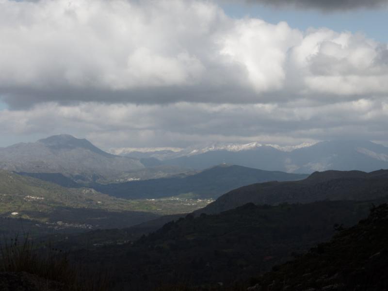 Wir hatten einen schönen Blick nach Westen auf die Lefka Ori, die Weißen Berge. Ihre höchste Erhebung, der Pachnes, ist mit 2453 m nur 3 m niedriger als der Ida.