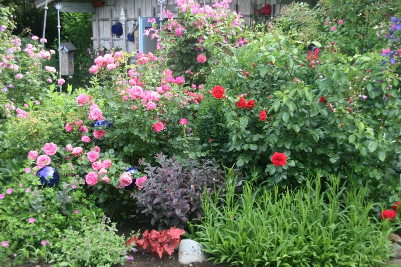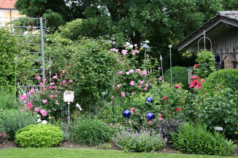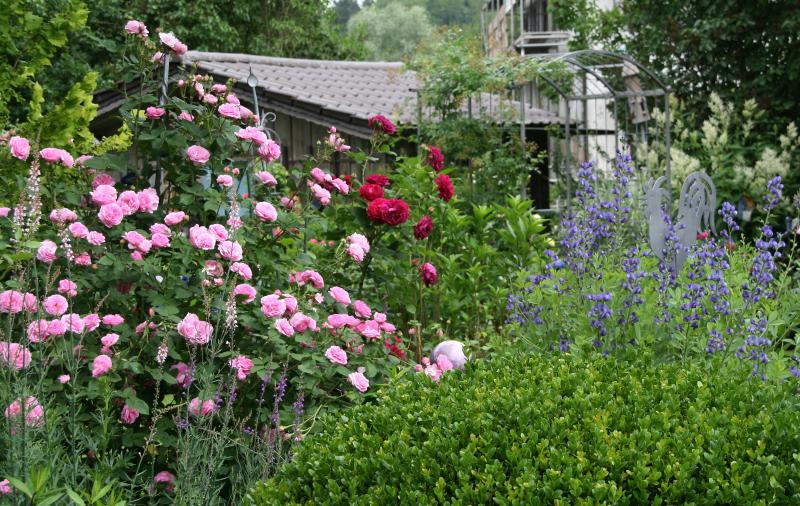 :D Links die Louise Odier, rechts davon die Alfred Colomb und die blaue Indigolupine