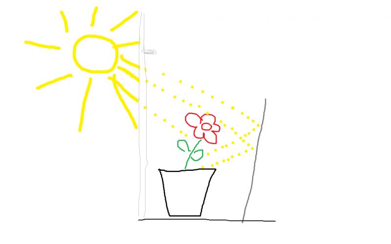 Man kann ein wenig gegen den einseitigen Wuchs machen, wenn man einen Spiegel hinter die Pflanzen stellt.