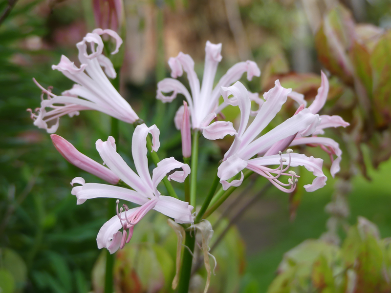 Sehr schön, dies zartrosa Nerine! Hier blüht nun endlich Dicentra torulosa. Irgendwie schafft sie es jedes Jahr, sich auszusäen. Heuer habe ich es gerade noch rechtzeitig bemerkt, dass sich eine Pflanze ins Heptacodion gewunden hatte, fasst hätte ich sie gejätet. :-X Also: ein paar mehr Blüten bitte, schöne Samenstränge bitte und dann geht es auch nächstes Jahr weiter.
