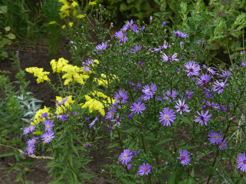 Hier beginnt auch der Asternrausch ganz langsam. Aster 'Treffpunkt' und Solidago 'Loysder Crown' sind ein super Team. :)