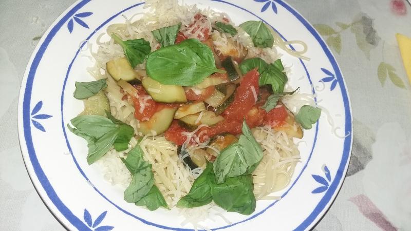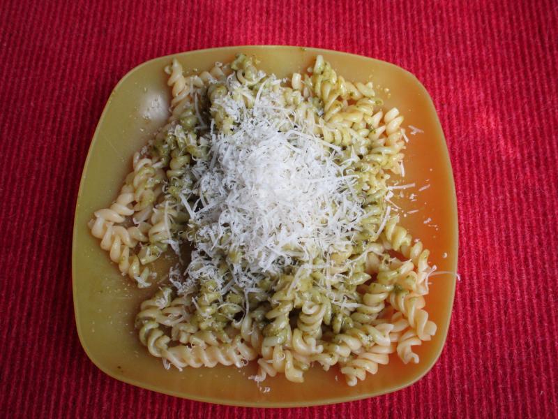 Heute ohne Schnickschnack und Deko: Spirelli mit Pesto Schennowese und Grana Padano.