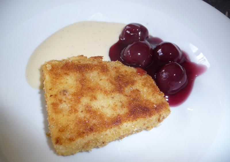 Griesschnitten mit Kirschen und Vanillesoße, gab noch ein paar mehr als nur die eine :D