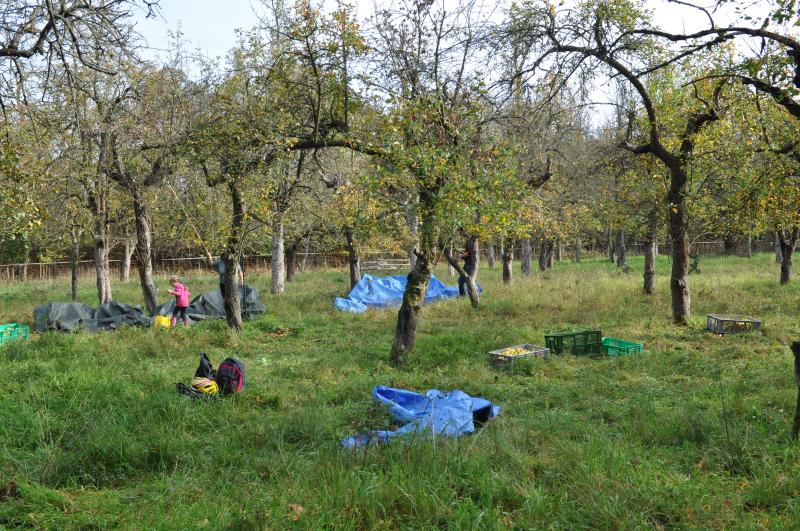Zucchalmaglio geerntet, 70 Jahre alte Bäume (5 x 5 Meter Abstand): fruchtbar wie eh und je, aber weniger saftig, viel kleinere Früchte, deutlich geringere Erntemenge als vor der Dürrezeit