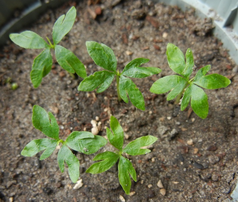 Samenstände im Herbst gesammelt, auseinandergefummelt und Samen mit Erde gemischt stratifiziert.