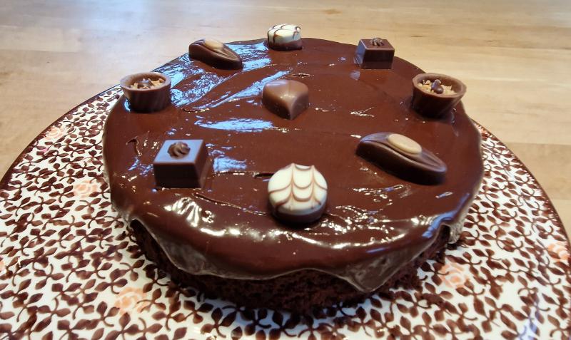 Gestern gab´s eine superleckeren Geburtstags-Schokoladenkuchen. Rezept ist von Ottolenghi und ich habe zum Glück nur die Hälfte genommen und eine 20er Form. Die Macarponecreme dazu habe ich mir gespart, wegen der Kalorien... hüstel... in dem kleinen Kuchen mit der Ganache sind schon 200g Schoki drin ;D. Zur Deko noch ein paar Pralinchen.
