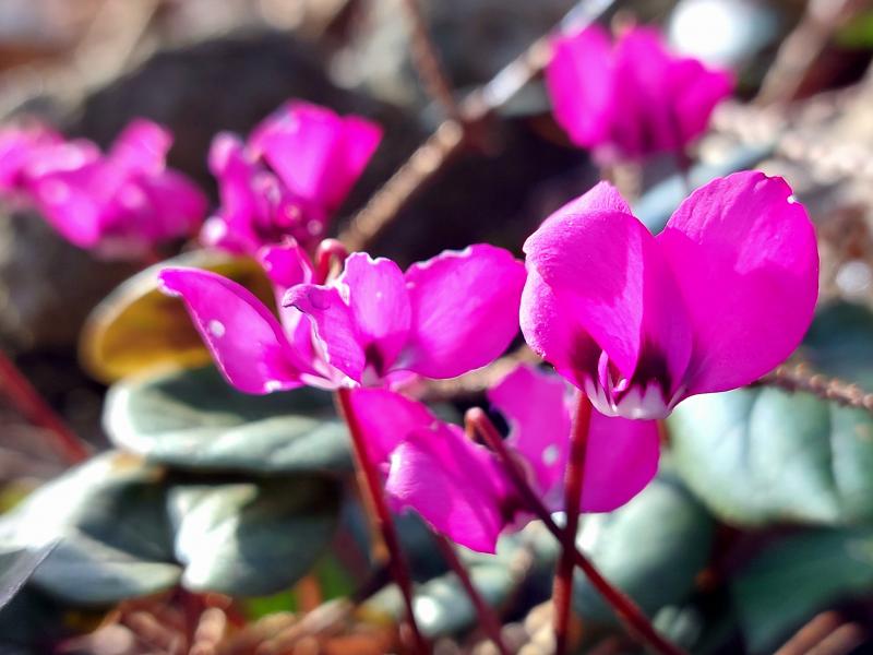 Die letzten Blüten der frühlingsblühenden Alpenveilchen.