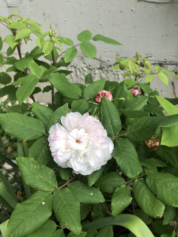 Diese Strassenrosen habe ich auch schon jahrelang nicht mehr gegossen, dabei haben wir trockene und heisse Sommer. Beim Sämling von der Supermarktrose kenne ich leider den Namen nicht. Die Blüten wirken üppig, sind aber ziemlich klein, wie man am Vergleich zu den Wollziest-Blättern erkennt.