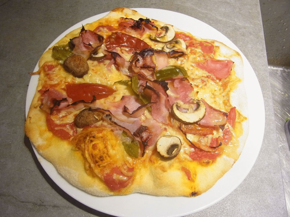 Bei uns gab es seit langem mal wieder Pizza (mit Endiviensalat nicht im Bild)