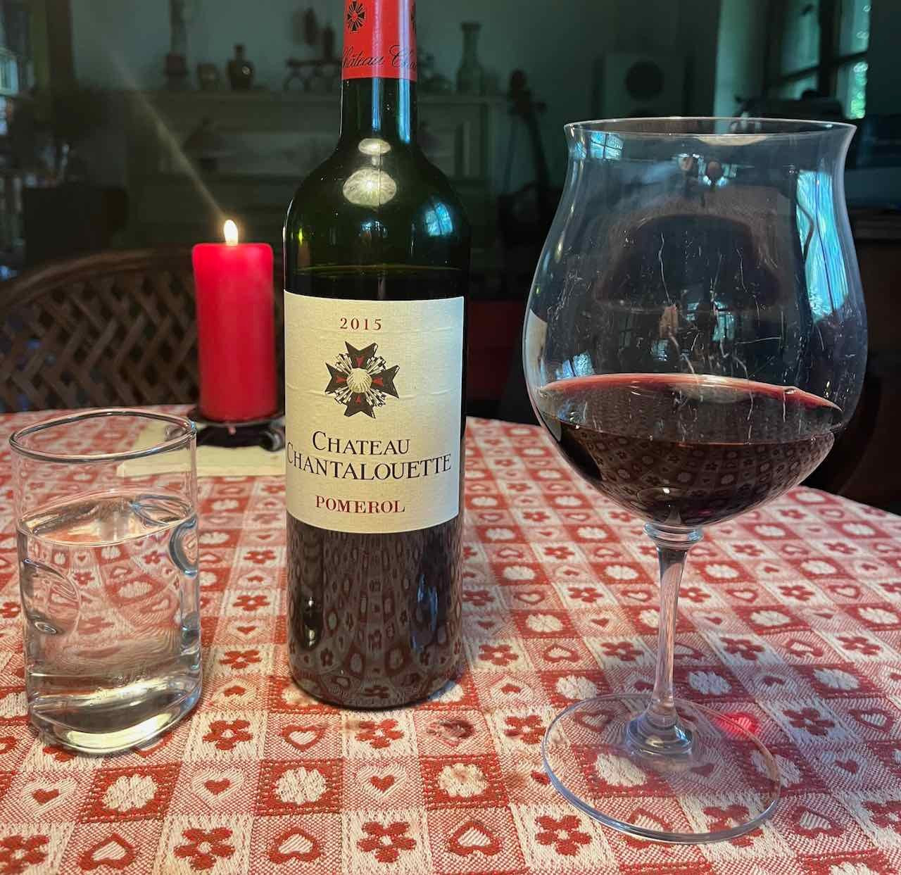 Maishähnchen-Brustfilet, mit Paprika, Rosmarin, Knoblauch und Pfeffer gewürzt und mit braunen Zwiebeln gebraten sowie Udon-Nudeln mit Sojasoße, Sambal Olek, Sesamöl, Ingwer und Knoblauch gebraten zum Pomerol 2015