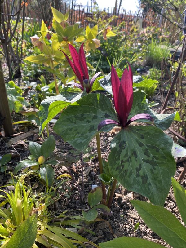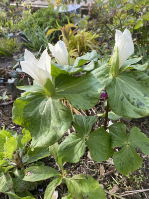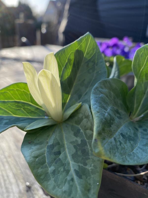 Ich hatte das Glück gleich Dreibeiner im Topf zu bekommen. Trillium chloropetalum Album mag ich besonders.