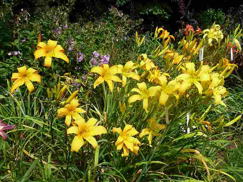 Donnerwetter ! Was für eine Blütenpracht zu dieser Zeit !So üppig ist es hier nicht mehr, die großen Horste sind doch mehr oder weniger abgeblüht.Aber manche zeigen erst jetzt was in ihnen steckt:Karla Kitamurahat mit der Blüte begonnen, heute mit dem bisher besten Ergebnis.Später war sie flacher geöffnet - aber die Hitze....aber in gelb blüht noch immer ganz viel