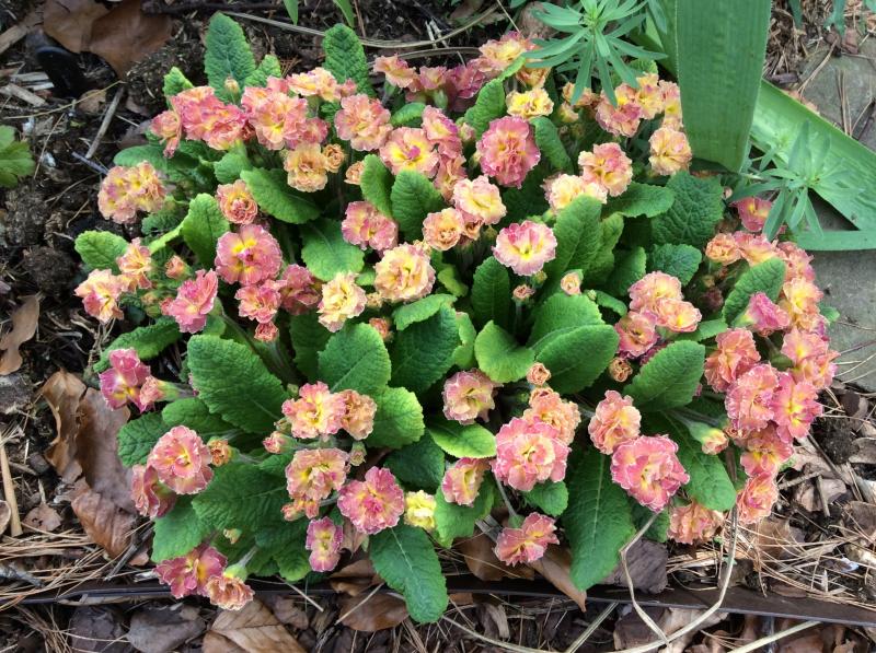 hier setzt das sonnige wetter der primelpracht langsam ein ende. ein paar veris-hybriden prunken aber noch.