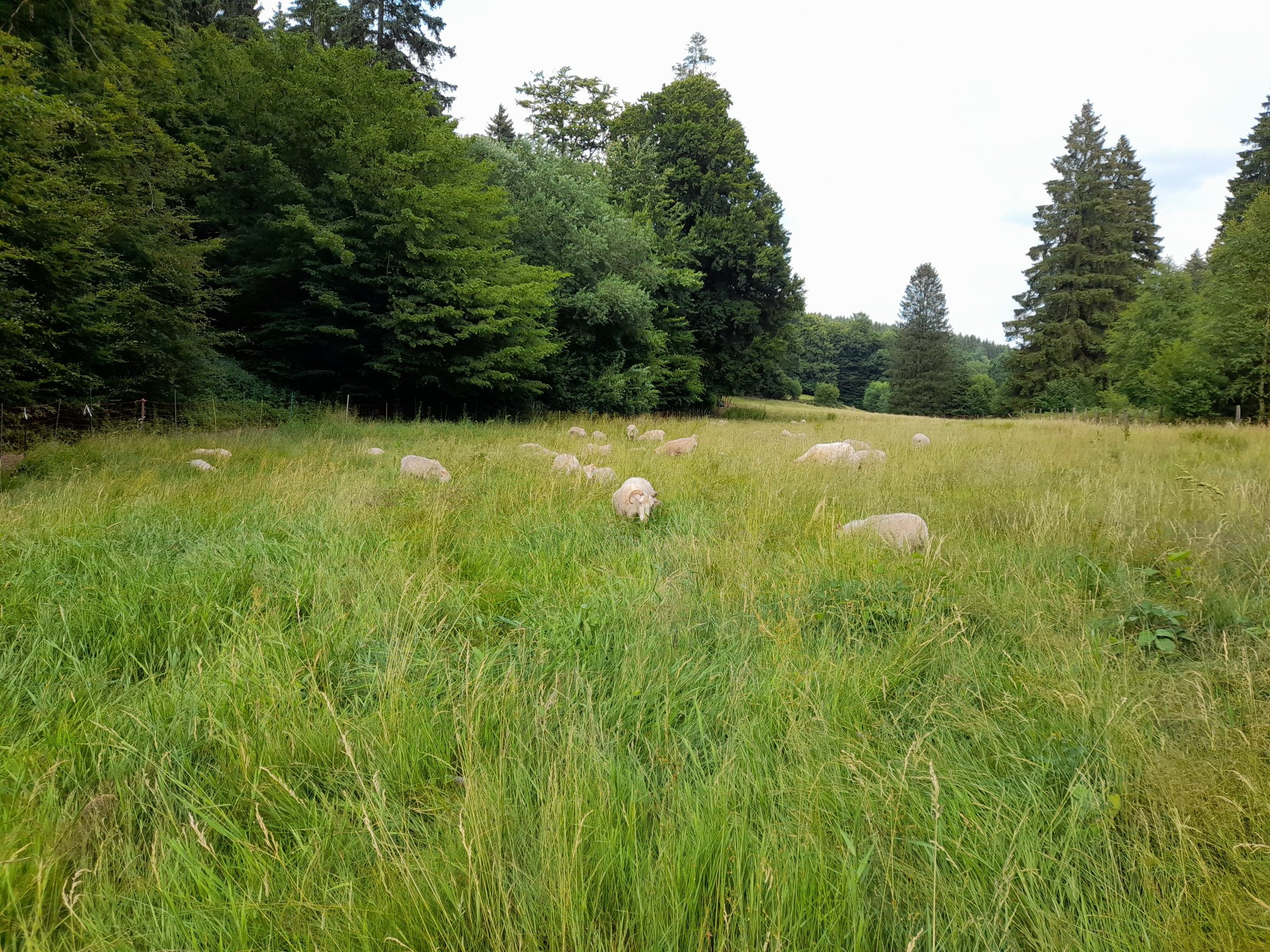 Abends noch die Schnucken gezäunt. Dort ist die Stimmung so semi wegen dieser riesigen Bremsen. Ätzend. Wenigstens konnten wir sie ins frische grün schubsen. Durst hatten sie. Wir hatten die meisten Lämmer an der Leckmasse gecatched.