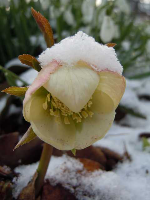 Helleborus x Hybridus "Strangman" mit Schneehäubchen