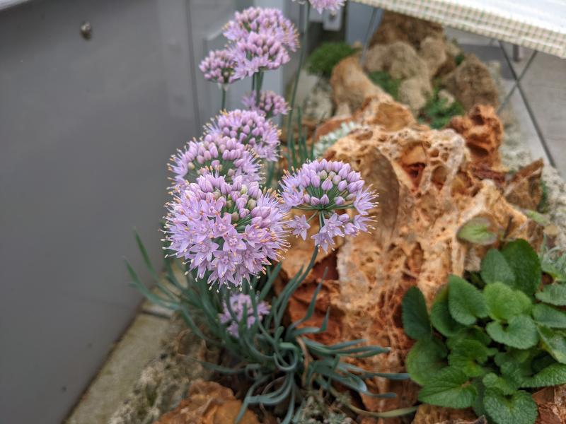 Im Trog beginnt gerade Allium senescens ssp. glaucum... sehr reizvoll durch die relativ späte Blühte.