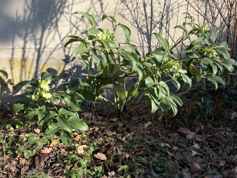 Die Langhaxerte ist eine stammbildende Helleborus. Wahrscheinlich H. argutifolius oder H. x sternii.