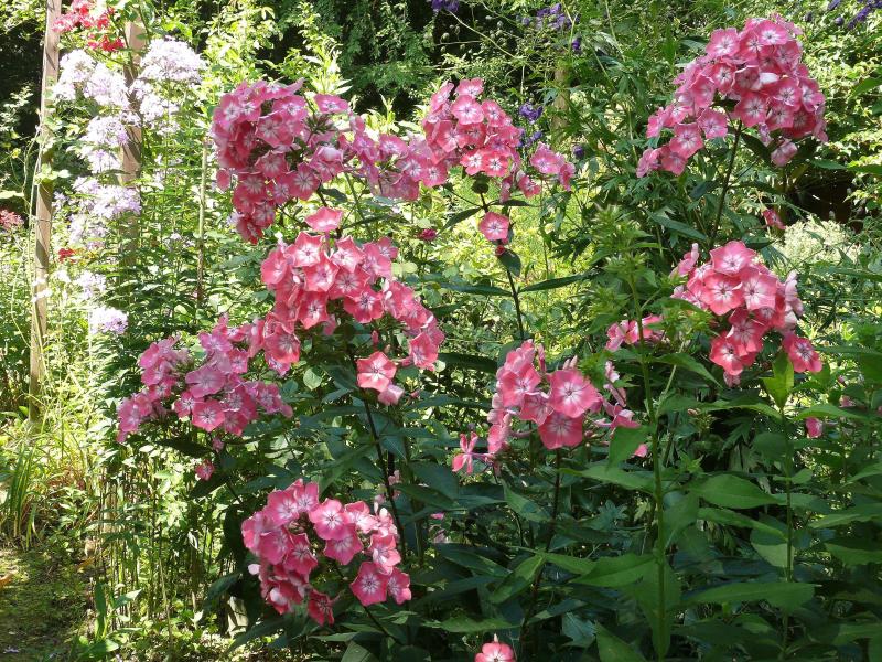 'Septembercharme' und 'Herbstglut' sind auch sehr schön, 'Rosabella' nicht weniger - doch kursieren meiner Meinung nach zwei verschiedene Phloxe mit diesem Namen. Einer ist lachsrosa, der andere frischrosa, beide mit Auge. Bleiben noch 'Purpurkuppel' und 'Mittsommer' von den alten Sorten, 'Purpurkuppel' ist noch erhältlich, beim schön altmodischen 'Mittsommer' weiß ich es nicht.
