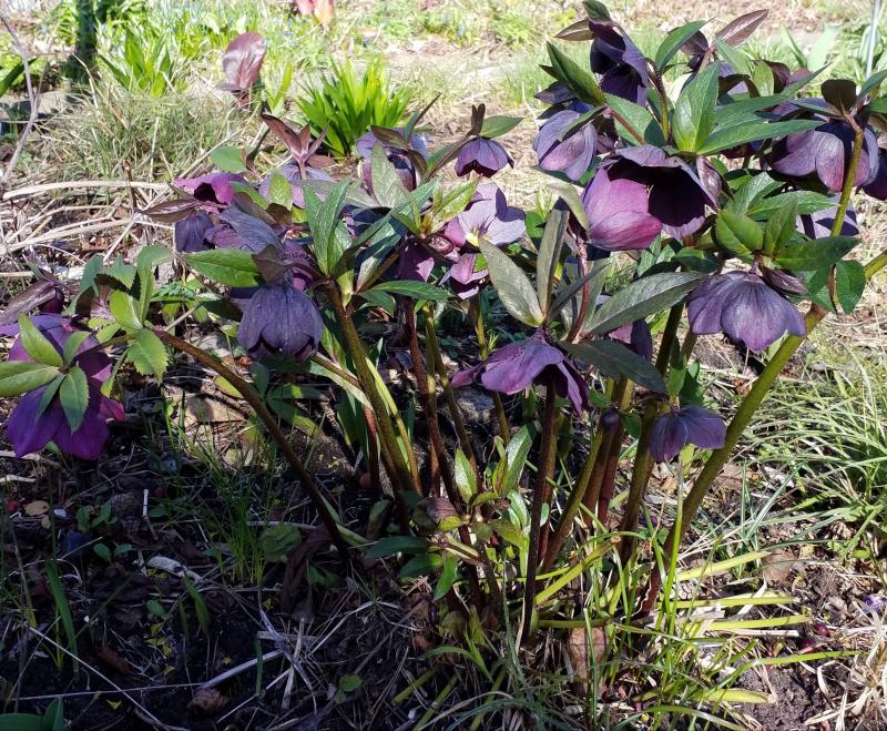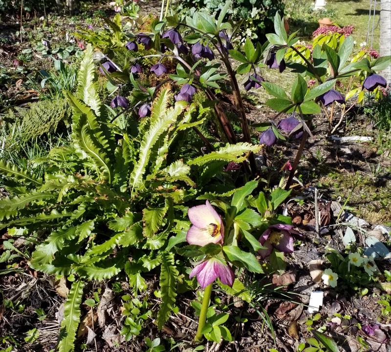 meine großblütige taubenschieferblaue slate blue von ashwood sieht dieses jahr trotz mildem winter leider wieder furchtbar aus, sie war schon mal besser zwischendrin – umgepflanzt hatte ich sie vor jahren schon mal, weil sie anfangs unter der süßkirsche heftig mäkelte, ich weiß nun nicht mehr, was ich der gutes tun soll. :-\