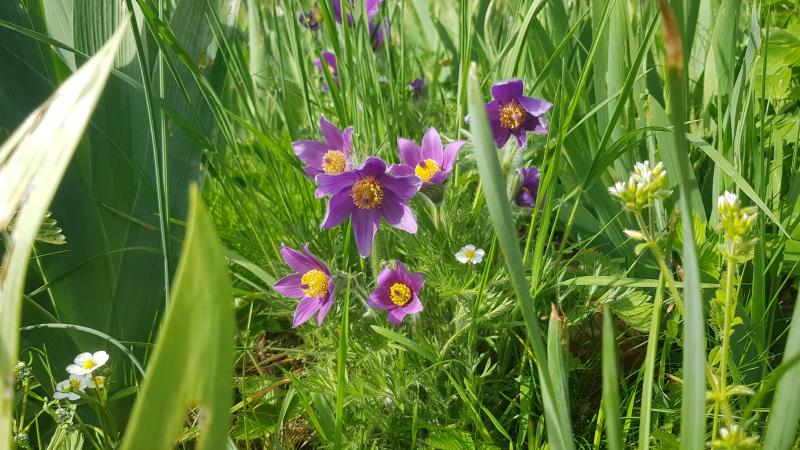Die Absaaten der wilden Pulsatillen P. pratensis ssp.nigricans blühen hier im Gelände immer sehr viel später als 'draußen'.