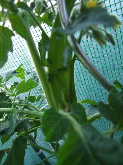 Fleischtomaten ziehen sich bei mir heuer auch mehrtriebig an einem Stamm. Wie bei Moorhex finde ich die Reisetomate am originellsten:(Bild stammt von mir und verstößt gegen kein CopyrightMoorhex hat geschrieben:Am allerkuriosesten ist das Wachstum meiner Reisetomate, deren Haupttrieb quasi drei Triebe schiebt, die allerdings miteinander verwachsen sind![]()