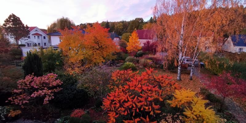 Blick aus dem Arbeitszimmer. Langsam beginnen die Gelbtöne zu dominieren.