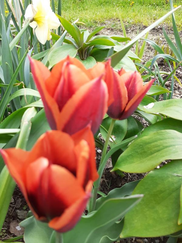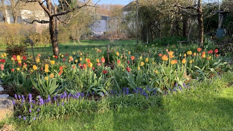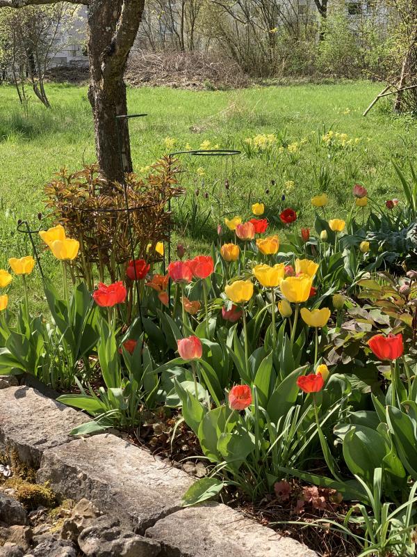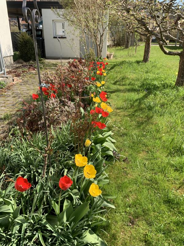 Die ersten beiden Tulpenbeete haben sich heute ein Wettleuchten geliefert. Zusammen mit dem ersten frischen Grün bin ich von dieser Üppigkeit immer ganz hin und weg 8)