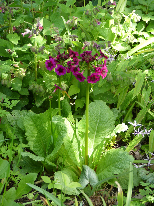 Primula elatior kann ich auf den Bildern nicht so wirklich entdecken, die meisten sind ja schon verblüht, und auf dem ersten Bild sehe ich eindeutig Primula veris. P. e. ist ganz zartgelb und hat in der Blütenmitte nicht diese orangefarbenen Flecken, wie sie für P. veris und auch P. vulgaris so typisch sind. Ich dachte auch eine Weile, dass ich P. e. im Garten habe, aber offenbar ist es vielmehr eine Hybride aus P. veris und P. vulgaris (hellgelbe Blüten auf langen Stilen, aber eben mit diesen Saftmalen).