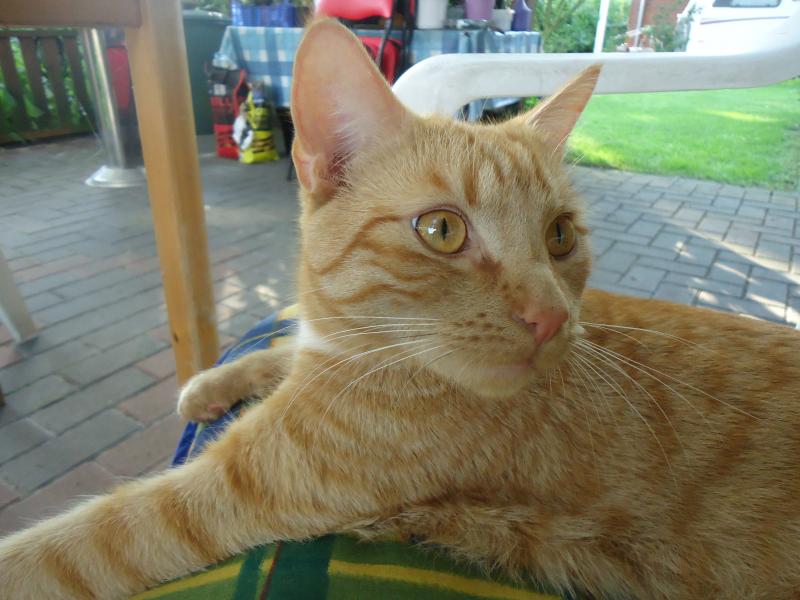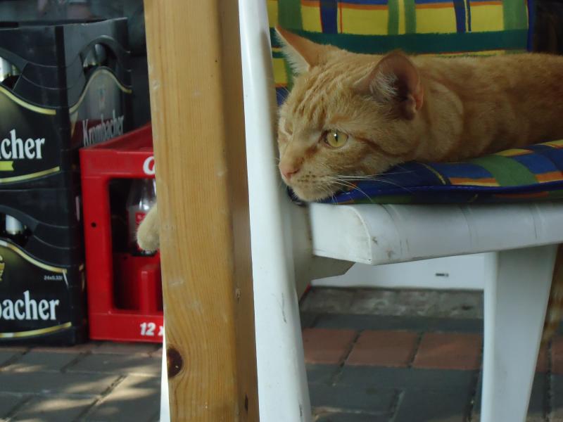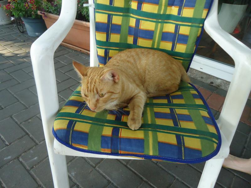 Hier ist und war bestes WetterMaja hat im Schlafzimmer geschlafen. Tagsüber ist sie immer drin und nachts ist sie unterwegs. Willi und Cookie machten es sich aber draußen gemütlich