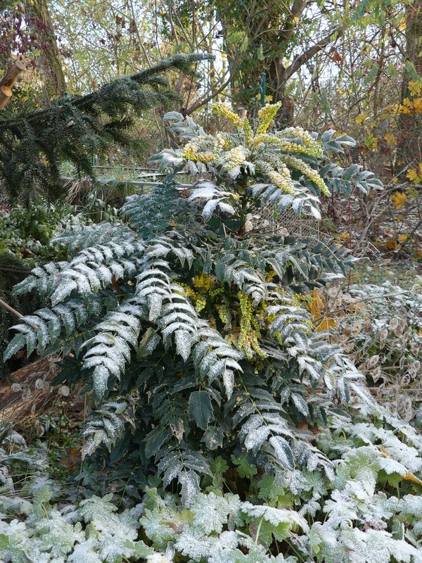 Mahonia 'Charity' wirkt leicht überzuckert fast noch mehr, als so schon.