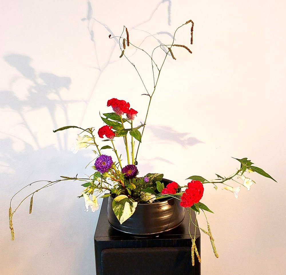Langsam wird´s weniger. Noch einige Celosien, Impatiens (wei im letzten Strauß), Sommerastern..., das muss reichen.