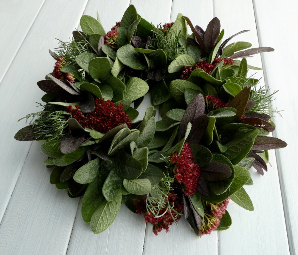 Wie alle Jahre Ende Oktober habe ich einen Kranz für Großmutters Grab gebunden, diesmal mit Salbei, Sedum und Artemisia.