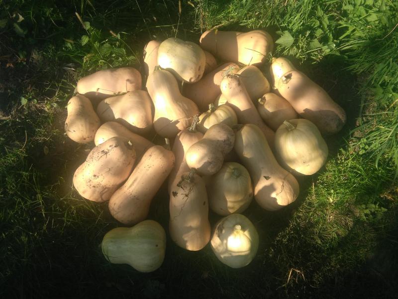 Ich hatte eine schlappe Kürbisernte. Die erste Pflanzung ging komplett an die Schnecken... die Nachsaat hatte sofort Hitzestress. Und nun - hat der Frost alle noch draußen als Herbstschmuck liegenden Kürbisse gefroren. Die müssen nun alle in den Gefrierschrank. Ist überschaubar - sollte aber nicht sein.... 8)