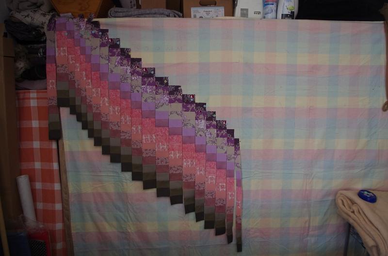 Beim Patchwork steppt man nur gerade soviel, das alle drei Lagen (Topping, Batting, Backing) miteinander unverrutschbar verbunden sind. Also was für Sofadecken usw.