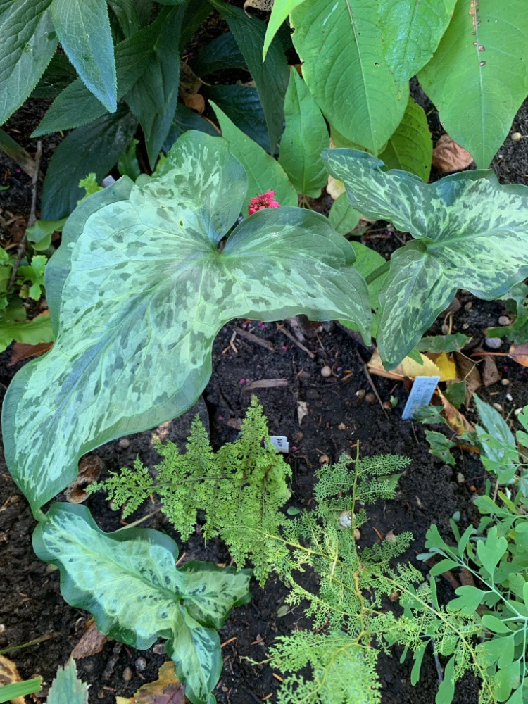 2 ‚Cris Tha Lihn‘ von Hagen Engelmann. Sonniger gepflanzt kommt beim Arum das Muster besser zur Geltung.