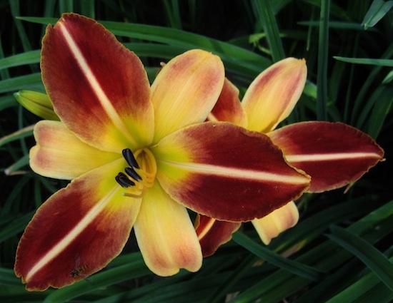 Sehr häufig auch bei orangerot-gelb á la Frans Fals!Ich möchte nur mal wissen, warum zweitonige (bitone) Taglilien ganz gehäuft bei Lavendelfarbigen auftauchen.