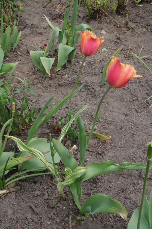 Die mehrblütigen Tulpen aus der Club-Serie sind verlockend, vielleicht aber doch nur Eintagsfliegen. Nachdem die rote 'Fiery Club' im letzten Jahr eine schöne lange, späte Blütenpracht geliefert hatte, habe ich im Herbst 'Night Club' in rotvioletten Tönen gesteckt, passend zu Silene dioica. 'Fiery Club' aber zeigt in diesem Jahr nur noch kümmerliche Blatttriebe, was nicht an zu geringer Düngung liegen kann. Vielleicht verbraucht der reiche Flor doch zu viel Kraft.