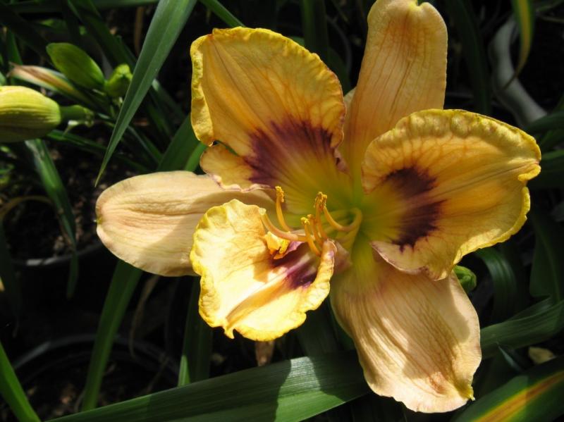 eine meiner liebsten hems, "heavenly dark matter", wächst gut, blüht viel, öffnet gut, riesige blüten mit einem markanten auge auf buttrig zitronengelbem grund