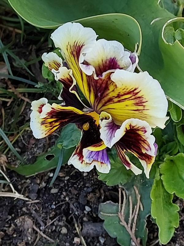 Und endlich eine orchideenblütige Viola mit weniger Schneckenfrass. Ich finde die Farbe sehr apart.