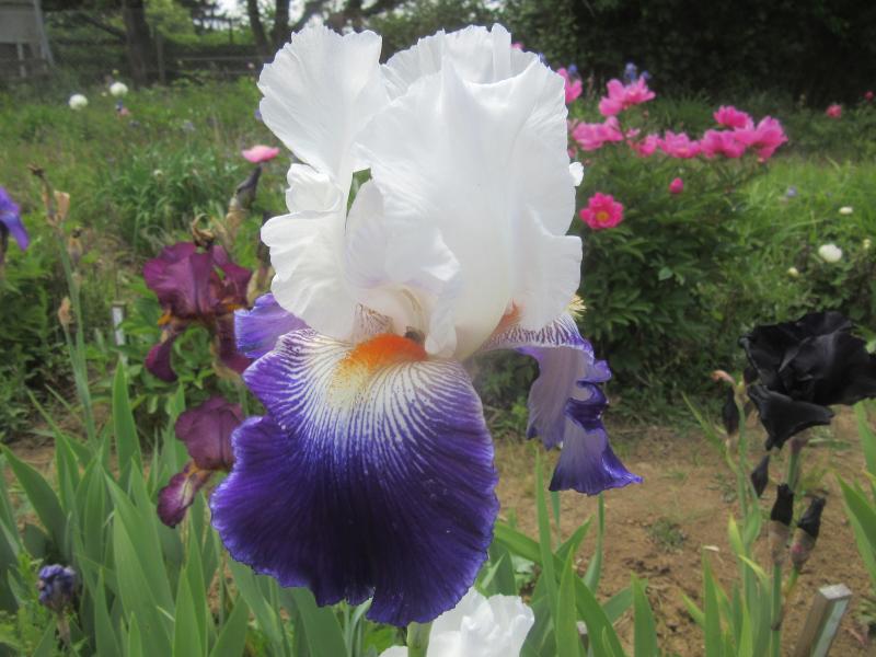 zuerst eine Iris pallida mindestens sehr nahestehende Namenlose, welche noch etwas höher wird und deren Blüten etwas größer sind, wodurch die Stiele sich immer wieder biegen, gelegentlich auch umfallen, aber das ist nicht bei allen der Fall.