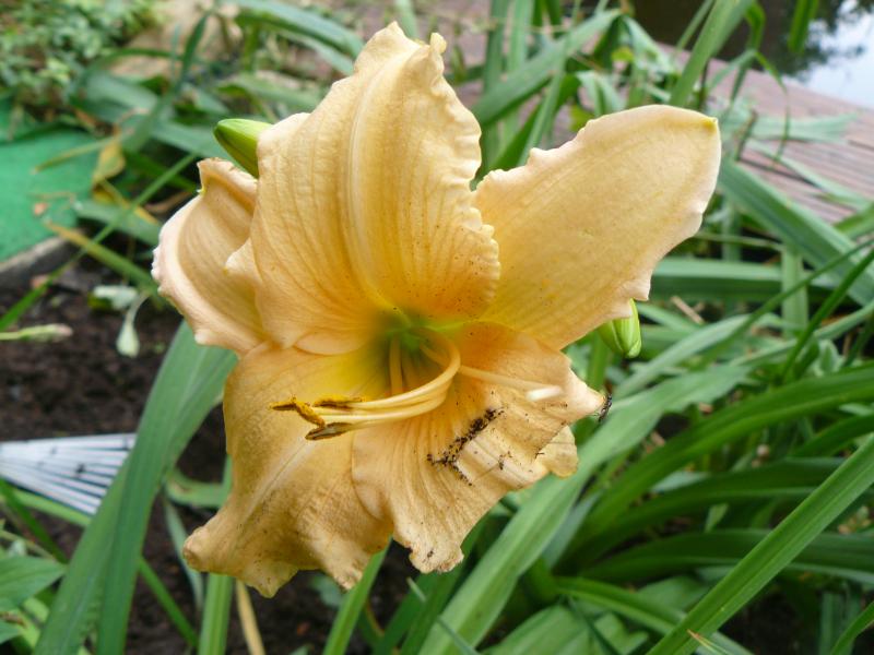 Einige Sorten, für die der Platz im Hausgarten nicht reicht, wurden in den Sämlingsgarten übersiedelt. Dort hat nun Fall Farewell das erste Mal erst spät zu blühen begonnen - im Hausgarten zwei Jahre davor immer schon um den 20. Juni. Mal sehen, wie lange er durchhält - die Blütengröße ware fürs Kreuzen ja prinzipiell gut, aber die Form und die Farbe brauchen dringend 'Modernisierung' ;)