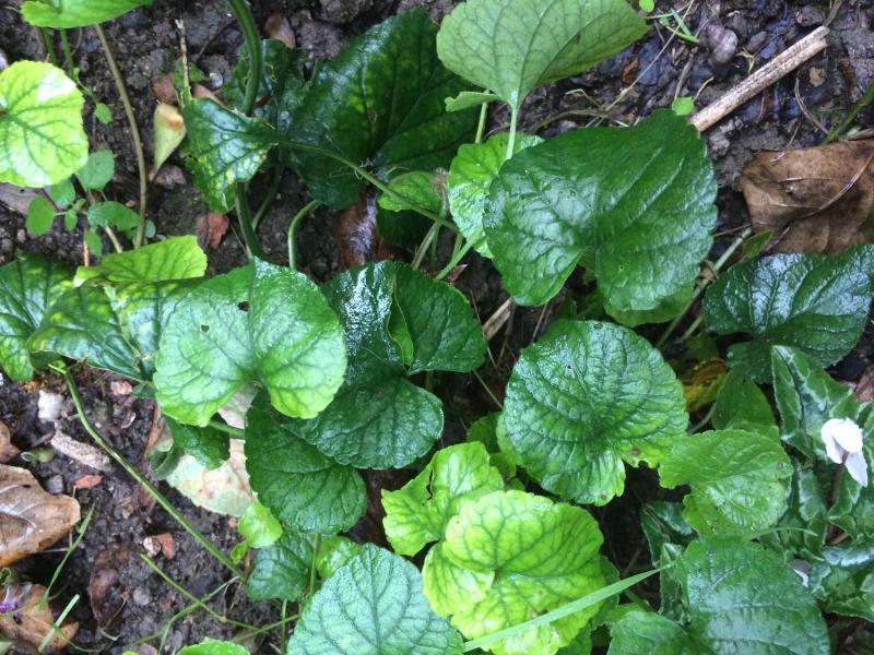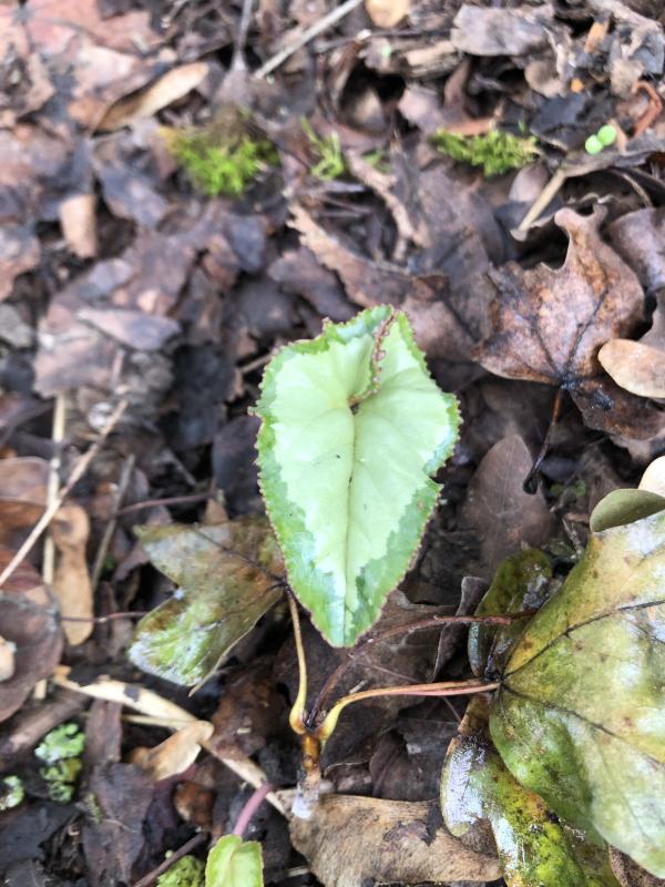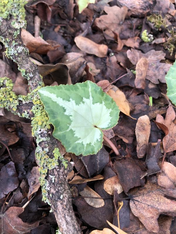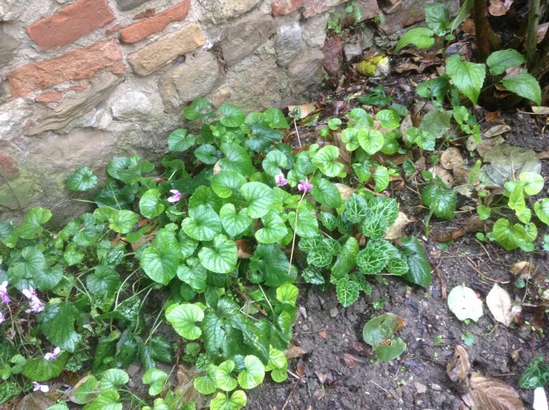 Jetzt ist ein Blattgewirr entstanden, ich kann die cyclamen nicht von dem sich überall versamenden Veilchen - welches? - unterscheiden. Es haben ja nicht alle Cyclamen die charakteristische Blattzeichnung. Die Veilchen will ich jäten, aber erst, wenn ich weiß, wer wer ist. ???