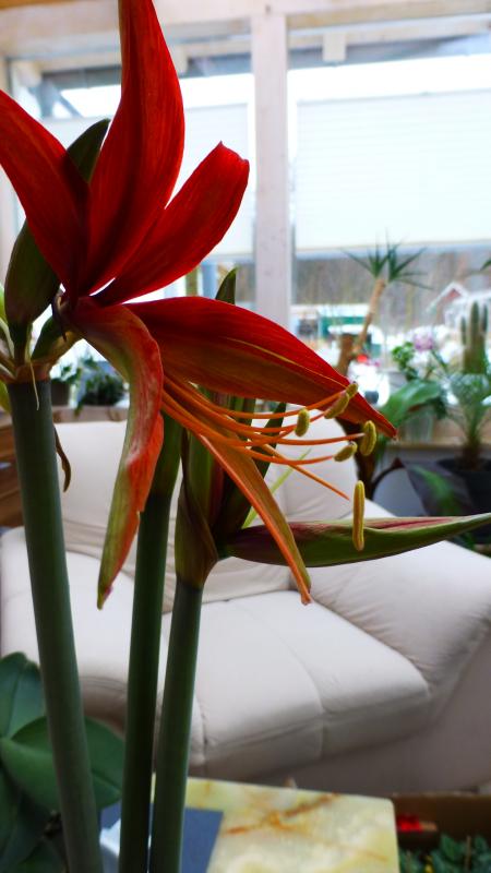 Sehr schön war ihr hier so zeigt. Ich habe im Jahr 2016 ein Ritterstern (Hippeastrum angustifolium) mit einem Blütenstiel gekauft. Jetzt hat es drei Stiele mit insgesamt 10 Blüten geöffnet. Bei einem Stiel sind die Blüten noch geschlossen.