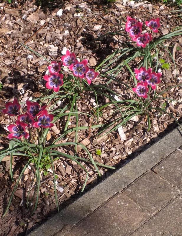 Sieht nach Tulipa humilis aus, evtl. die Sorte 'Little Beauty'. Eine Wildtulpe.