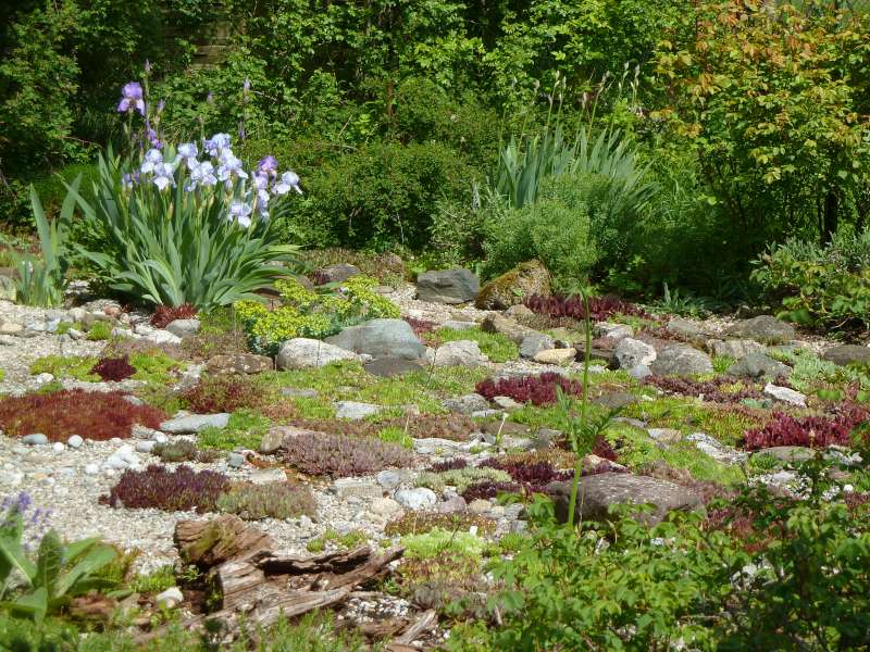Der kleine Sempervivumgarten ist im Mai am farbigsten. Liegt da wie eine Patchworkdecke