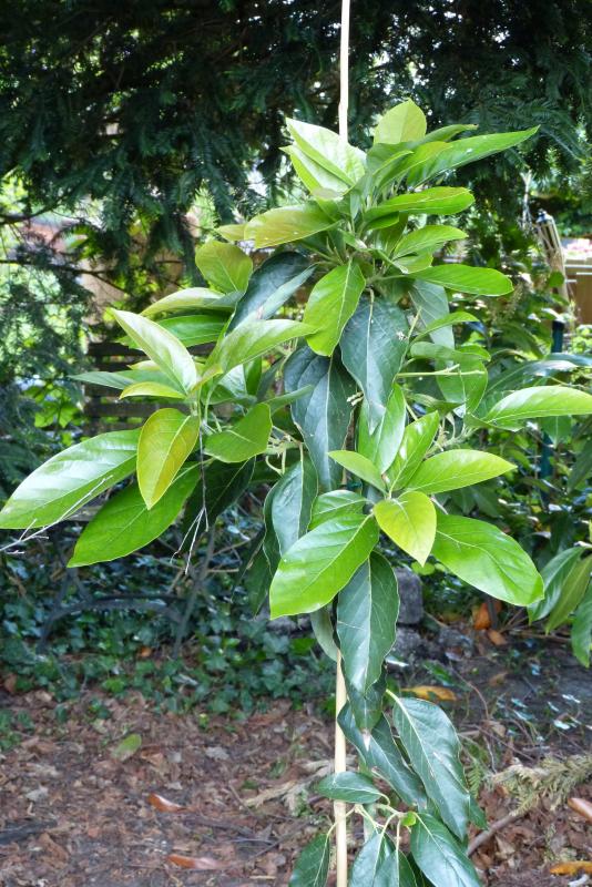 Hier eine meiner drei auf der robusten Unterlage Duke7 veredelten Avocados der Sorte Bacon (im Herbst 2018 erhalten).